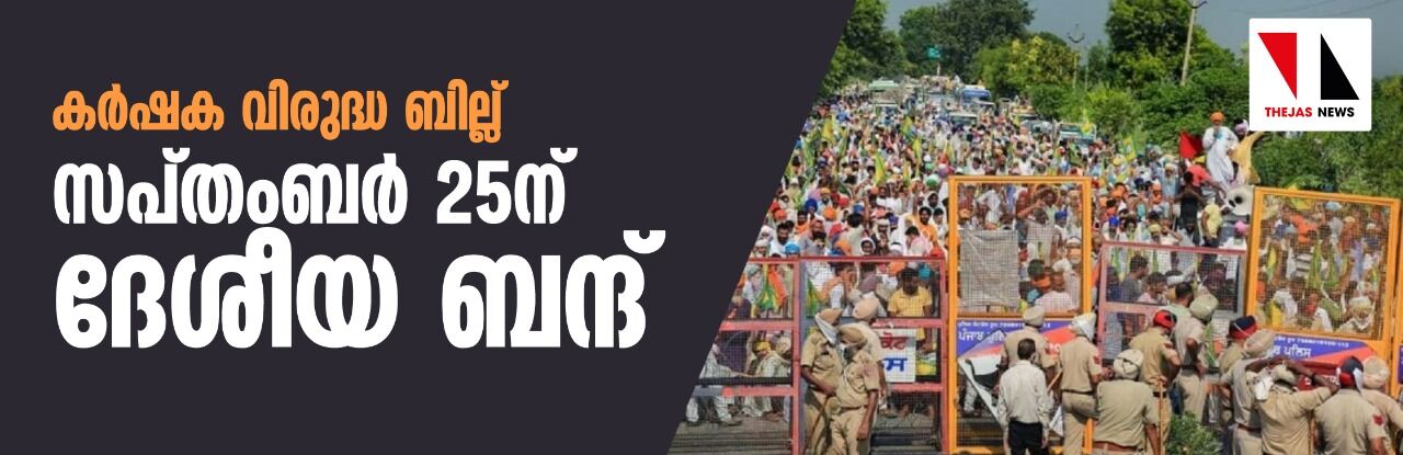 കര്ഷക വിരുദ്ധ ബില്ല്: സപ്റ്റംബര് 25ന് ദേശീയ ബന്ദ്
