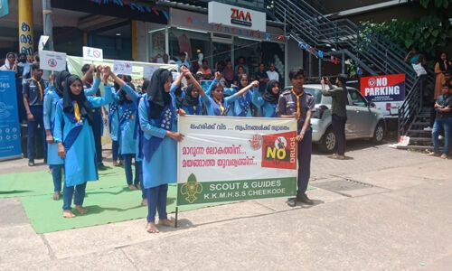 കെ കെ എം ഹയര് സെക്കന്ഡറി സ്കൂള് പ്രിന്സിപ്പാള് മുനീര്, പ്രധാനാധ്യാപകന്. ഇമ്പിച്ചി മോതി, ബീരാന് ഹാജി, കമ്മുക്കുട്ടി, സ്കൗട്ട്സ് മാസ്റ്റര് ലിജേഷ്, ഗൈഡ് ക്യാപ്റ്റന് മഞ്ജു, മിഥുന്, എസ് ആര് ജി കണ്വീനര് റസ്സാഖ് എന്നിവര് പങ്കെടുത്തു. 28 വിദ്യാര്ഥത്ഥികള് പങ്കെടുത്ത ഫഌഷ് മോബിന് അരുണ്ദേവ്, അഭിനന്ദ്, ഹൃദ്യ, റുഷ്ദ' നേതൃത്വം നല്കി. വിളയില്, അരീക്കോട് ഭാഗങ്ങളില് ഫഌഷ് മോബ് അവതരിപ്പിച്ചത് ജനകീയശ്രദ്ധയാകര്ഷിച്ചു.