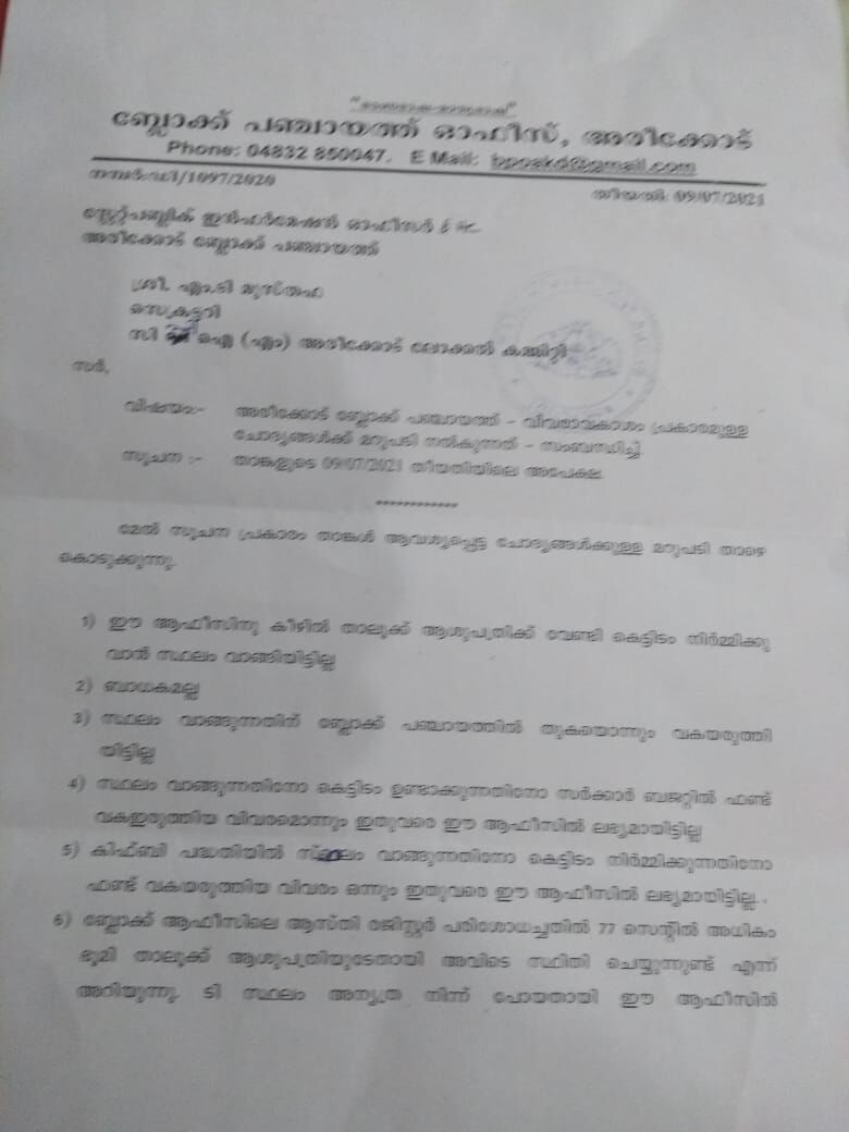 അരീക്കോട് താലൂക്ക് ആശുപത്രിക്ക് ബജറ്റില് അനുവദിച്ച 25 കോടി നഷ്ടമാകും