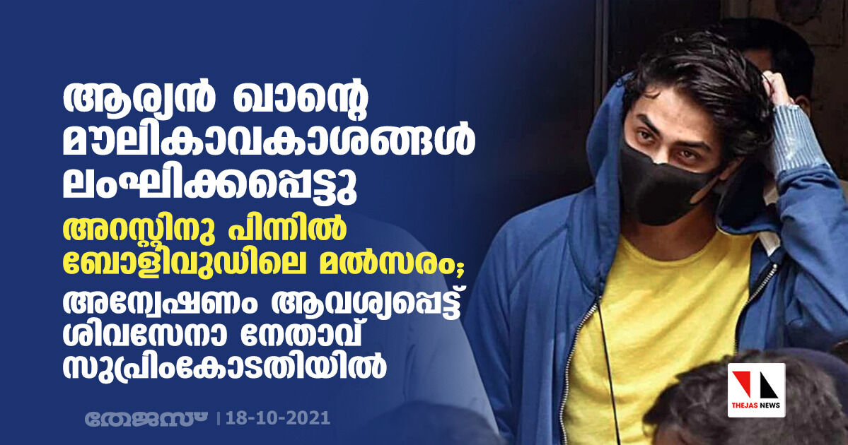 ആര്യന് ഖാന്റെ മൗലികാവകാശങ്ങള് ലംഘിക്കപ്പെട്ടു; അറസ്റ്റിനു പിന്നില് ബോളിവുഡിലെ മല്സരം; അന്വേഷണം ആവശ്യപ്പെട്ട് ശിവസേനാ നേതാവ് സുപ്രിംകോടതിയില്