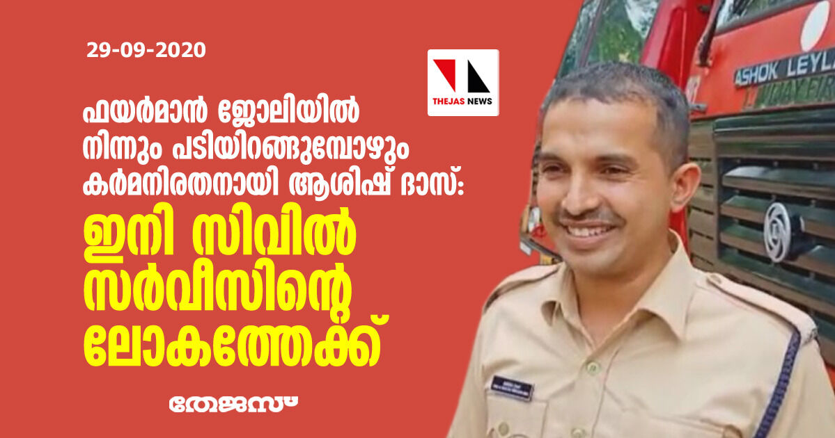 ഫയര്മാന് ജോലിയില് നിന്നും പടിയിറങ്ങുമ്പോഴും കര്മനിരതനായി ആശിഷ് ദാസ് : ഇനി സിവില് സര്വ്വീസിന്റെ ലോകത്തേക്ക്