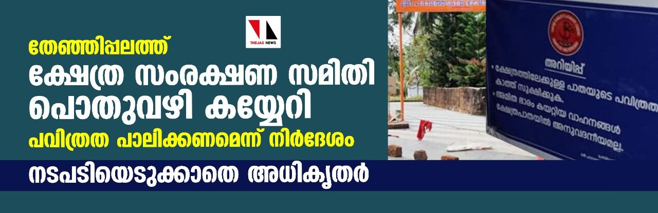 തേഞ്ഞിപ്പലത്ത് ക്ഷേത്ര സംരക്ഷണ സമിതി പൊതുവഴി കയ്യേറി; പവിത്രത പാലിക്കണമെന്ന് നിര്ദേശം; നടപടിയെടുക്കാതെ അധികൃതര്