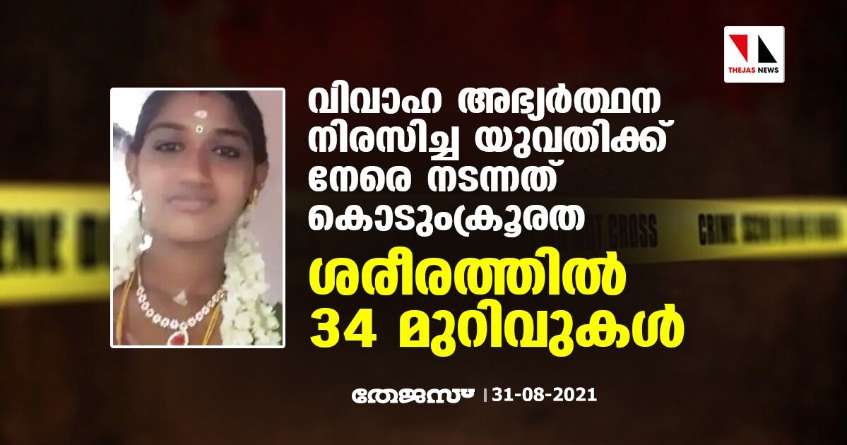 വിവാഹ അഭ്യര്ത്ഥന നിരസിച്ച യുവതിക്കു നേരെ നടന്നത് കൊടുംക്രൂരത; ശരീരത്തില് 34 മുറിവുകള്
