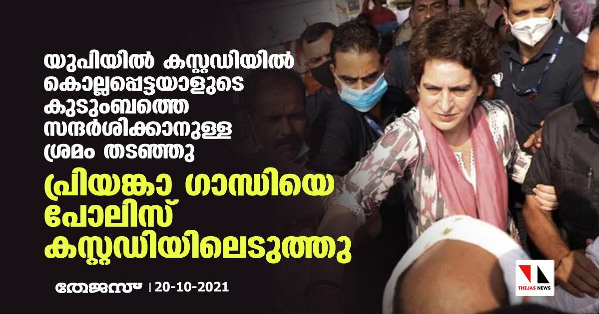 യുപിയില് കസ്റ്റഡിയില് കൊല്ലപ്പെട്ടയാളുടെ കുടുംബത്തെ സന്ദര്ശിക്കാനുള്ള ശ്രമം തടഞ്ഞു; പ്രിയങ്കാ ഗാന്ധിയെ പോലിസ് കസ്റ്റഡിയിലെടുത്തു