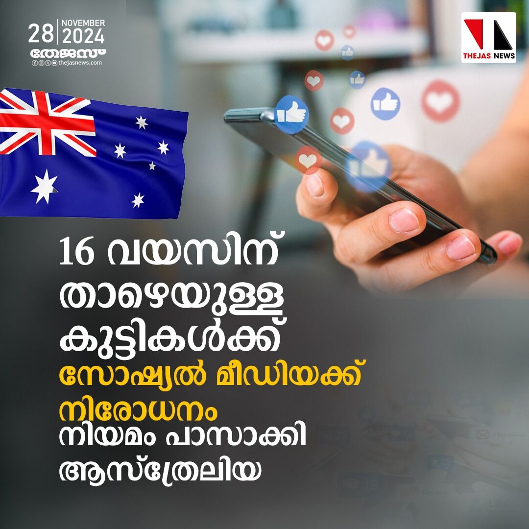 പതിനാറ് വയസുള്ള കുട്ടികള്ക്ക് സോഷ്യല് മീഡിയ പാടില്ല; നിയമം പാസാക്കി ആസ്ത്രേലിയ, നിയമം ലംഘിക്കുന്ന കമ്പനികള്ക്ക് 270 കോടി രൂപ പിഴ
