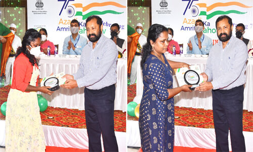 കേന്ദ്ര സര്ക്കാരിന്റെ ആസാദീ കാ അമൃത് മഹോത്സവിന്റെ ഭാഗമായി വിശാഖപട്ടണത്ത് സംഘടിപ്പിച്ച പരിപാടിയിലാണ് ഇവരെ ആദരിച്ചത്. ആന്ധ്രപ്രദേശ് പട്ടികവര്ഗ ക്ഷേമകാര്യ സെക്രട്ടറി കാന്തിലാല് ഡാന്ഡേയാണ് പ്രശസ്തി പത്രം സമ്മാനിച്ചത്. സംസ്ഥാന വനിത വികസന കോര്പറേഷന് കോഴിക്കോട് പേരാമ്പ്ര, ചക്കിട്ടപ്പാറ മുതുകാട് കോളനികളില് നടത്തി വരുന്ന വനമിത്ര പദ്ധതി സംരംഭകരാണ് ഇരുവരും.