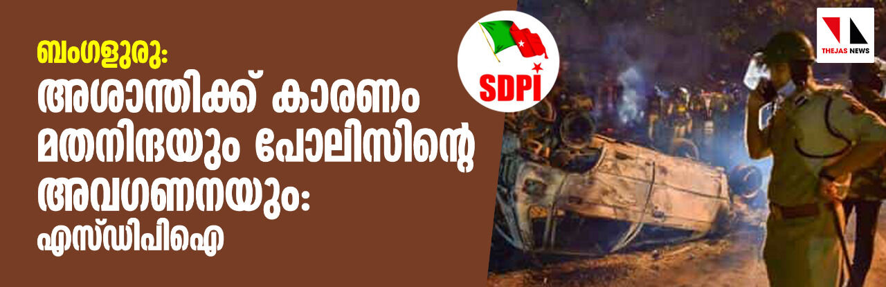ബംഗളുരു: അശാന്തിക്ക് കാരണം മതനിന്ദയും പോലീസിന്റെ അവഗണനയും; എസ്ഡിപിഐ