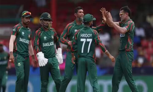 നേരത്തെ, ബംഗ്ലാ നിരയില് ഒരാള്ക്ക് പോലും 20 റണ്സില് കൂടുതല് നേടാന് സാധിച്ചിരുന്നില്ല. ഷാകിബിന് പുറമെ റിഷാദ് ഹുസൈന് (13), മഹ്മുദുള്ള (13), ജേക്കര് അലി (12), ടസ്കിന് അഹമ്മദ് (പുറത്താവാതെ 12), ലിറ്റണ് ദാസ് (10) എന്നിവരാണ് രണ്ടക്കം മറ്റുതാരങ്ങള്. തന്സിദ് ഹസന് (0), നജ്മുല് ഹുസൈന് ഷാന്റോ (4), തൗഹിദ് ഹൃദോയ് (9), തസ്നിം ഹസന് (3) എന്നിവരാണ് പുറത്തായ മറ്റുതാരങ്ങള്. സോംപാല്, ദിപേന്ദ്ര തുടങ്ങിയവര് രണ്ട് വിക്കറ്റ് വീതം വീഴ്ത്തി.