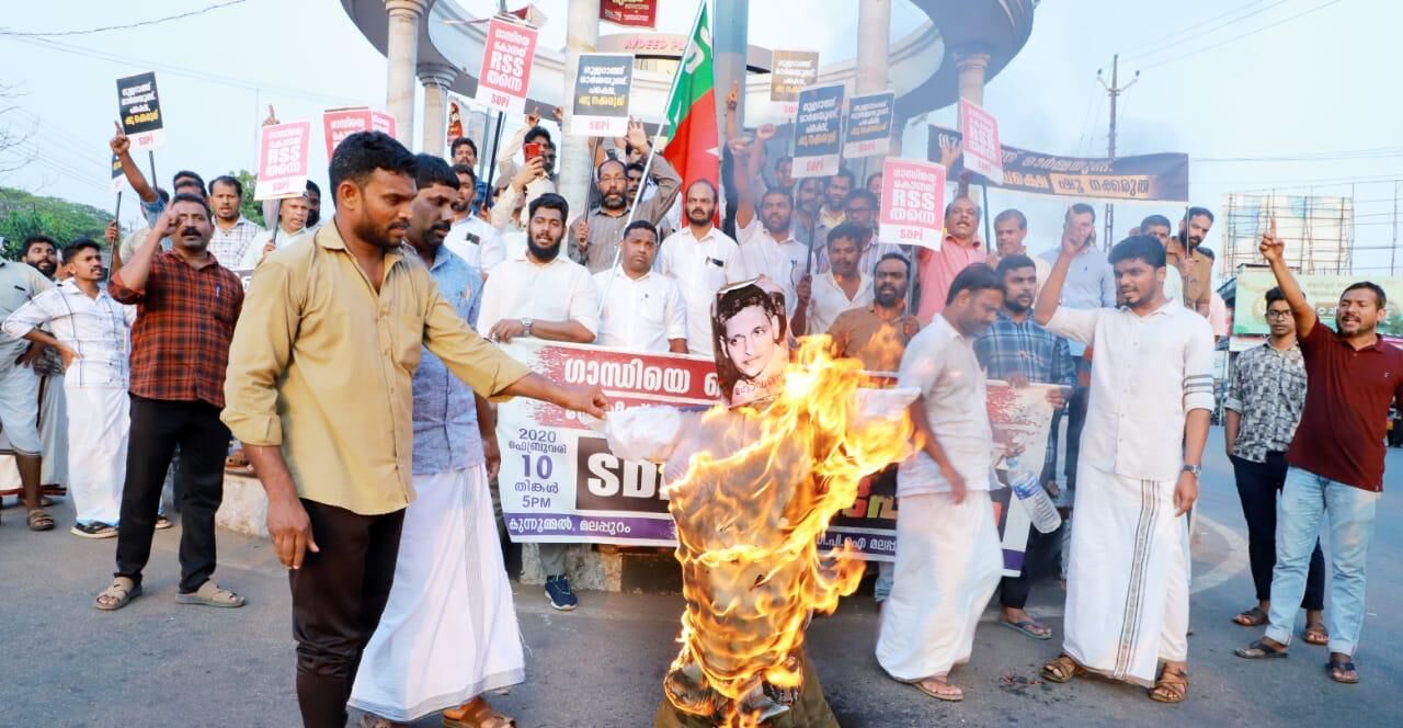 ഗാന്ധിയെ കൊലപ്പെടുത്തിയ ഗോഡ്സെയുടെ കോലം പ്രതിഷേധ സൂചകമായി കത്തിക്കുകയും ചെയ്തു.