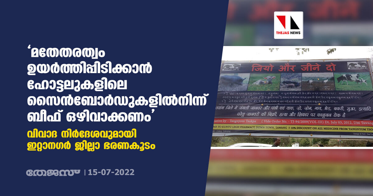 'മതേതരത്വം ഉയര്ത്തിപ്പിടിക്കാന് ഹോട്ടലുകളിലെ സൈന്ബോര്ഡുകളില്നിന്ന് ബീഫ് ഒഴിവാക്കണം'; വിവാദ നിര്ദേശവുമായി ഇറ്റാനഗര് ജില്ലാ ഭരണകൂടം