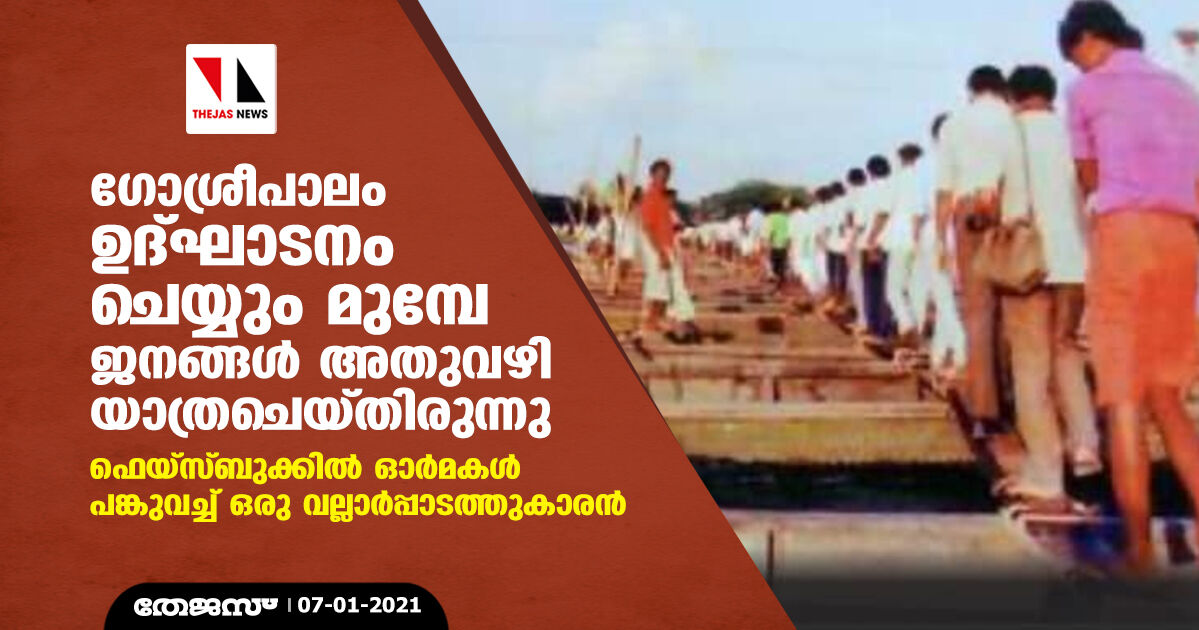 ഗോശ്രീപാലം ഉദ്ഘാടനം ചെയ്യും മുമ്പേ ജനങ്ങള് അതുവഴി യാത്രചെയ്തിരുന്നു; ഫെയ്സ്ബുക്കില് ഓര്മകള് പങ്കുവച്ച് വല്ലാര്പ്പാടത്തുകാരന്
