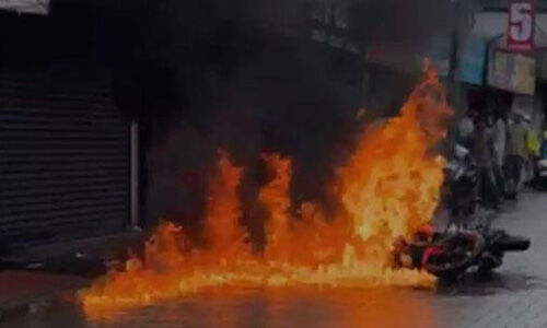 കോഴിക്കോട്ട് അപകടത്തില് പെട്ട ബൈക്കിന് തീപിടിച്ചു