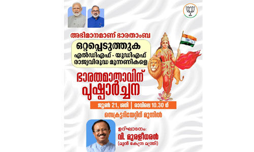 ആര്എസ്എസ് കൊടിയും 'അഖണ്ഡഭാരതവും' ഒഴിവാക്കി ബിജെപിയുടെ 'ഭാരതാംബ'