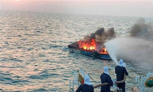 കോസ്റ്റ് ഗാര്ഡിന്റെ അരുഷ് ആണ് രക്ഷാപ്രവര്ത്തനം നടത്തിയത്. സമീപത്തുണ്ടായിരുന്ന മറ്റ് ബോട്ടുകളിലെ ജീവനക്കാരുടെ സഹായത്തോടെയാണ് തീപിടിച്ച ബോട്ടില് നിന്ന് തൊഴിലാളികളെ രക്ഷപ്പെടുത്തിയത്.