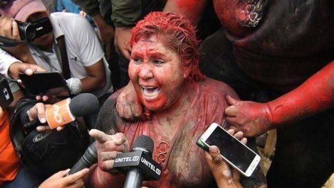 മേയര് പട്രീഷ്യ ആര്സെയെ ആണ് ജനം തെരിവിലൂടെ വലിച്ചിഴച്ച് ചുവന്ന പെയിന്റില് മുക്കി മുടി മുറിച്ച് ആക്രമിച്ചത്.