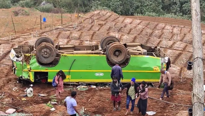 ഉദഗമണ്ഡലത്തില് നിന്ന് തങ്കാടിലേക്ക് പോവുകയായിരുന്ന മിനി ബസ്സ് ഒരു സ്വകാര്യ കൃഷിയിടത്തില് തലകീഴായി മറിയുകയായിരുന്നു. 12 സ്ത്രീകളും 17 പുരുഷന്മാരും മൂന്നു കുട്ടികളും ഉള്പ്പെടെ 32 യാത്രക്കാര് ബസ്സിലുണ്ടായിരുന്നതായി പോലിസ് പറഞ്ഞു. പരിക്കേറ്റവരെ നാട്ടുകാരും പോലിസും ചേര്ന്ന് ഉടന് തന്നെ സമീപത്തുള്ള ആശുപത്രിയിലേക്ക് മാറ്റി. രണ്ടു പേര് ഒഴികെ പരിക്കേറ്റ എല്ലാവരുടേയും നില സാധാരണ നിലയിലാണെന്നും ഉടന് ഡിസ്ചാര്ജ് ചെയ്യാനാകുമെന്നും ആശുപത്രി അധികൃതര് അറിയിച്ചു.