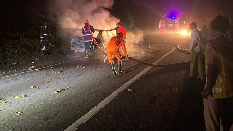 ശബരിമല തീര്ത്ഥാടകര് സഞ്ചരിച്ച കാറിന് തീപിടിച്ചു