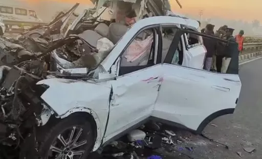 അമിതവേഗതയിലെത്തിയ കാര് ബൈക്കിലും ലോറിയിലും ഇടിച്ചു; അപകടത്തില് ഏഴു പേര് മരിച്ചു