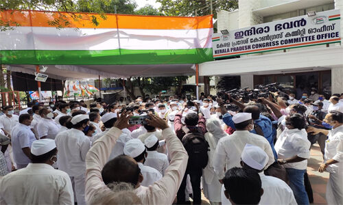 തിരുവനന്തപുരം: കൊവിഡ് മാനദണ്ഡങ്ങള് പാലിക്കാതെ കൂട്ടം കൂടിയതിന് കോണ്ഗ്രസ് നേതാക്കള്ക്കെതിരേ കേസെടുത്തു. ഇന്ദിരാഭവനില് കെപിസിസി പ്രസിഡന്റിന്റെ സ്ഥാനാരോഹണ ചടങ്ങില് കൂട്ടം കൂടിയതിനാണ് മ്യൂസിയം പോലിസ് കേസെടുത്തത്. കണ്ടാലറിയാവുന്ന 100 പേര്്ക്കെതിരെയാണ് കേസെടുത്തത്. കൂട്ടം കൂടി, കൊവിഡ് മാനദണ്ഡങ്ങള് പാലച്ചില്ല തുടങ്ങിയ കുറ്റങ്ങള് ചുമത്തിയാണ് മ്യൂസിയം പോലിസ് കേസെടുത്തത്.