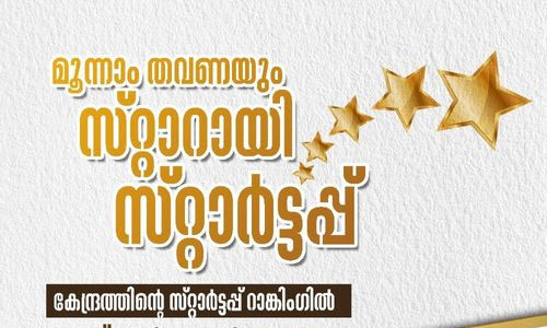 സ്റ്റാര്ട്ടപ്പ് മേഖലയിലെ മികച്ച പ്രകടനത്തിനുള്ള കേന്ദ്ര സര്ക്കാരിന്റെ സ്റ്റാര്ട്ടപ്പ് പുരസ്കാരം തുടര്ച്ചയായി മൂന്നാം തവണയും കേരളത്തിന്