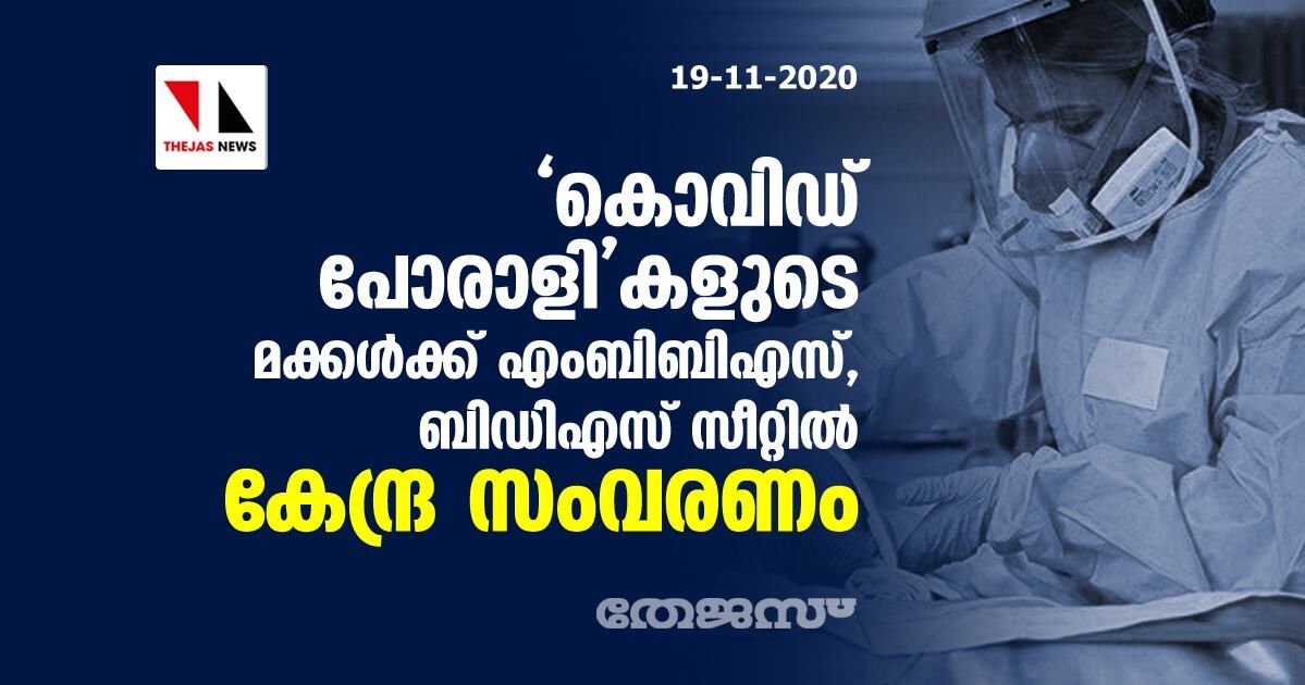 'കൊവിഡ് പോരാളി'കളുടെ മക്കള്ക്ക് എംബിബിഎസ്, ബിഡിഎസ് സീറ്റില് കേന്ദ്ര സംവരണം