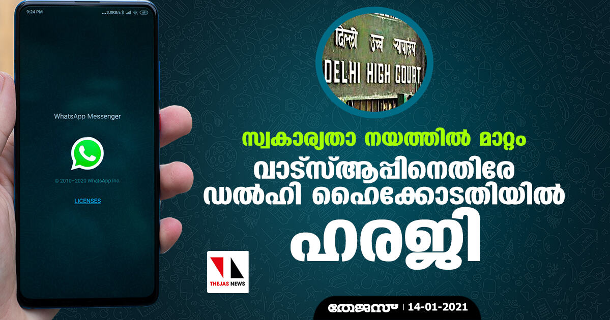 സ്വകാര്യതാ നയത്തില് മാറ്റം: വാട്സ്ആപ്പിനെതിരേ ഡല്ഹി ഹൈക്കോടതിയില് ഹരജി