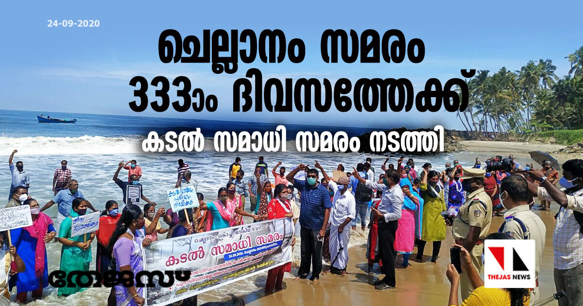 ചെല്ലാനം സമരം 333ാം ദിവസത്തേക്ക്: കടല് സമാധി സമരം നടത്തി