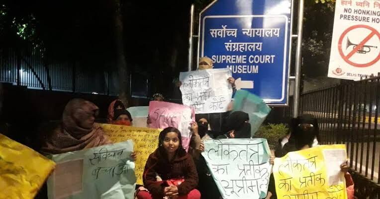 പൗരത്വ നിയമം: ഹരജികള് പരിഗണിക്കാനിരിക്കെ അര്ദ്ധരാത്രിയില് സുപ്രീംകോടതിക്ക് മുന്നില് സ്ത്രീകളുടെ പ്രതിഷേധം