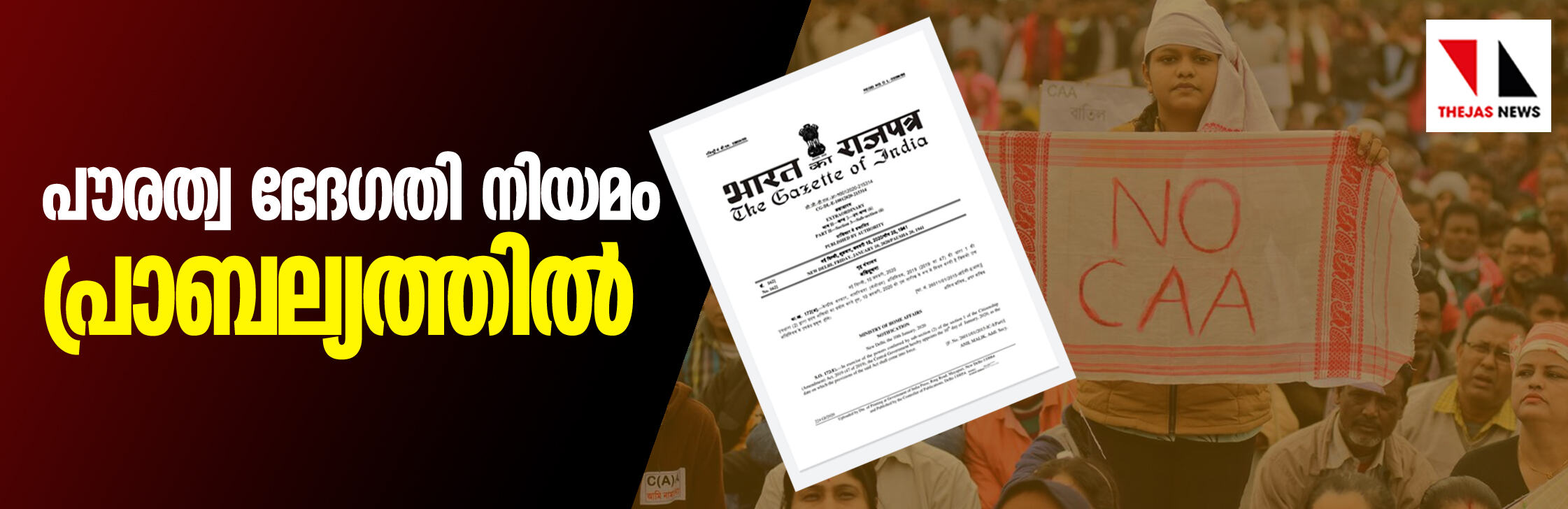 പൗരത്വ ഭേദഗതി നിയമം പ്രാബല്യത്തില്