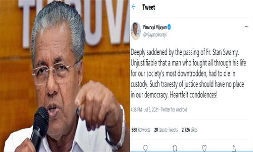 കസ്റ്റഡിയില് മരിക്കേണ്ടി വന്നത് നീതീകരിക്കാനാവില്ല; സ്റ്റാന് സ്വാമിയുടെ മരണത്തില് മുഖ്യമന്ത്രി