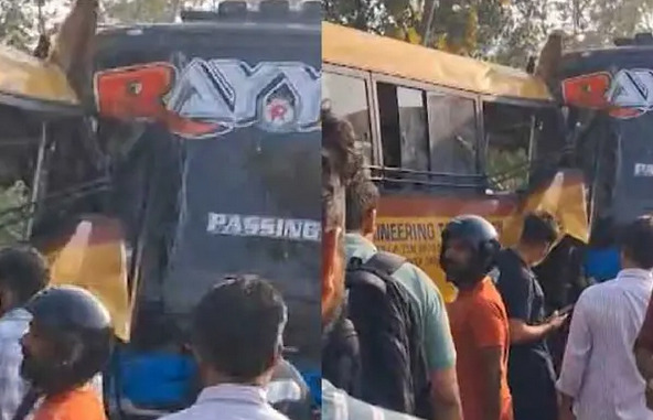 പൂക്കാട്ടുപടിയില് കോളജ് ബസ്സും സ്വകാര്യ ബസ്സും കൂട്ടിയിടിച്ച് അപകടം; ഒന്പത് പേര്ക്ക് പരിക്ക്