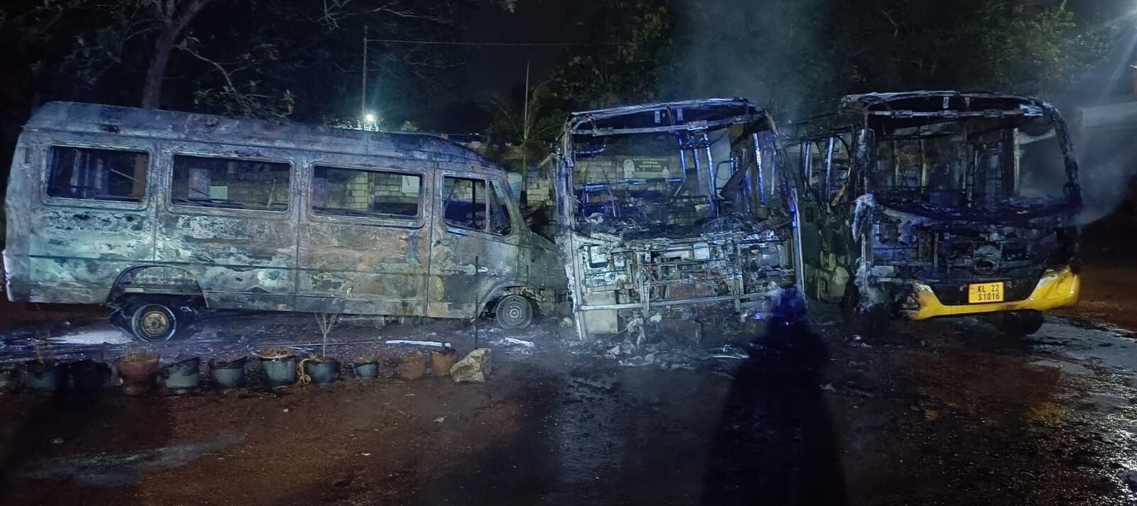 ബസുകള് ആരോ കത്തിച്ചതാണെന്നാണ് സ്കൂള് അധികൃതരുടെ പരാതി. രണ്ട് വലിയ ബസുകളും ഒരു ടെമ്പോ ട്രാവലര് മിനിബസുമാണ് പൂര്ണമായും കത്തിനശിച്ചത്. വലിയ ബസുകളെല്ലാം ഒരുമിച്ചാണ് നിര്ത്തിയിട്ടിരുന്നത്. ഒരു ടെമ്പോ ട്രാവലര് മറ്റൊരു സ്ഥലത്തും പാര്ക്ക്ചെയ്തിരുന്നു. എന്നാല്, ടെമ്പോ ട്രാവലര് ബസുകളിലേക്ക് ഇടിച്ചുകയറ്റിയശേഷമാണ് തീയിട്ടതെന്നാണ് പറയുന്നത്. സംഭവത്തില് സിസിടിവി ദൃശ്യങ്ങളടക്കം പരിശോധിച്ചാല് മാത്രമേ കൂടുതല് വ്യക്തതവരികയുള്ളൂവെന്ന് പോലിസ് പറഞ്ഞു.