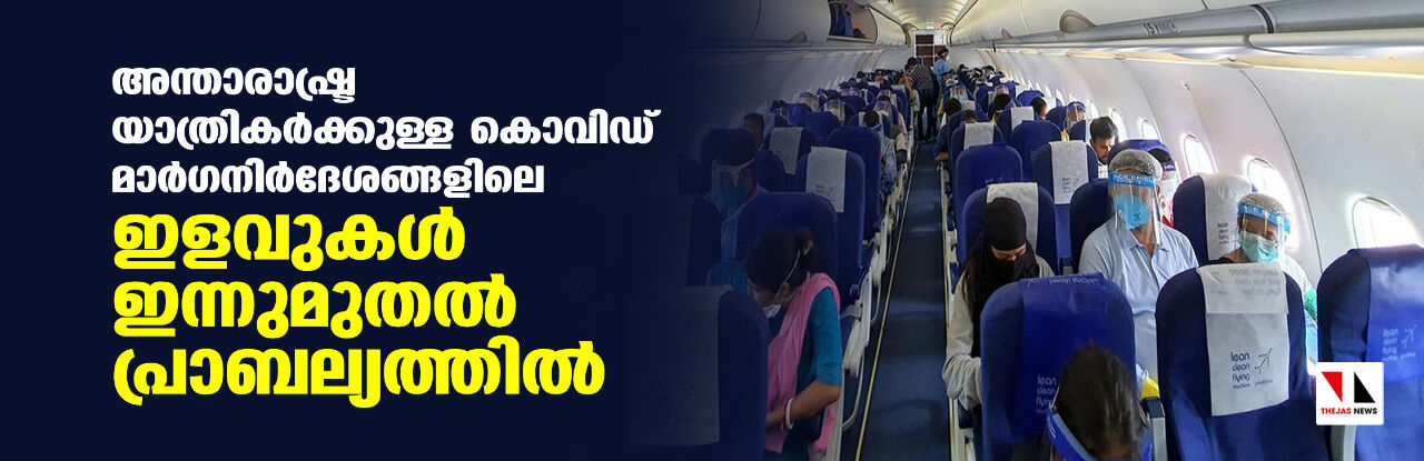 അന്താരാഷ്ട്ര യാത്രികര്ക്കുള്ള കൊവിഡ് മാര്ഗനിര്ദേശങ്ങളിലെ ഇളവുകള് ഇന്നുമുതല് പ്രാബല്യത്തില്