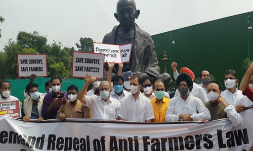 കോണ്ഗ്രസ്സിന്റെ പഞ്ചാബ് യൂനിറ്റില് നിന്നുള്ള എംപിമാരില് മിക്കവരും പ്രതിഷേധത്തില് അണിനിരന്നു. രാജ്യത്തെ രക്ഷിക്കുക, കര്ഷകരെ രക്ഷിക്കുകയെന്ന മുദ്രാവാക്യമെഴുതിയ പ്ലക്കാര്ഡുകളും പ്രതിഷേധക്കാര് ഉയര്ത്തി.