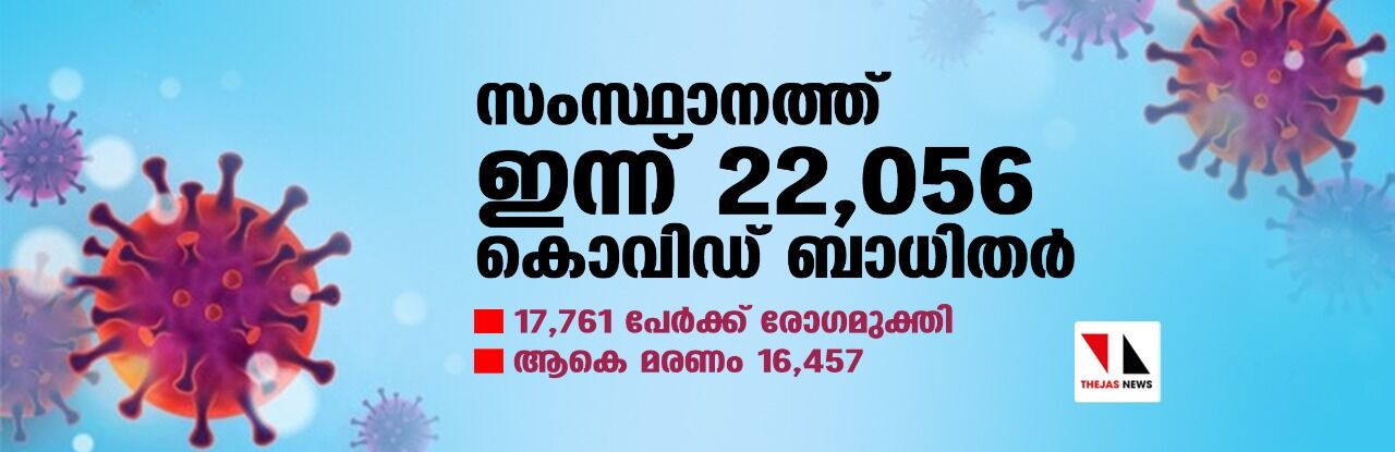 സംസ്ഥാനത്ത് 22,056 പേര്ക്ക് കൊവിഡ് 19 സ്ഥിരീകരിച്ചു; 131 മരണം