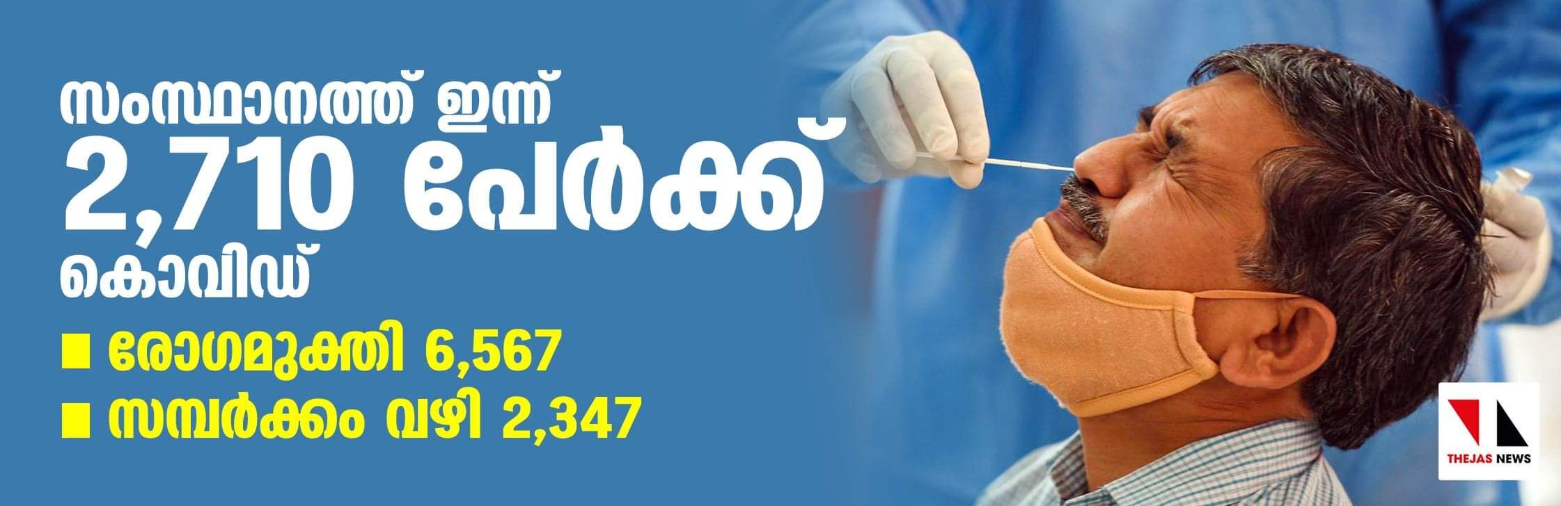 സംസ്ഥാനത്ത് 2,710 പേര്ക്ക് കൊവിഡ്-19 സ്ഥിരീകരിച്ചു; 6,567 പേര്ക്ക് രോഗമുക്തി