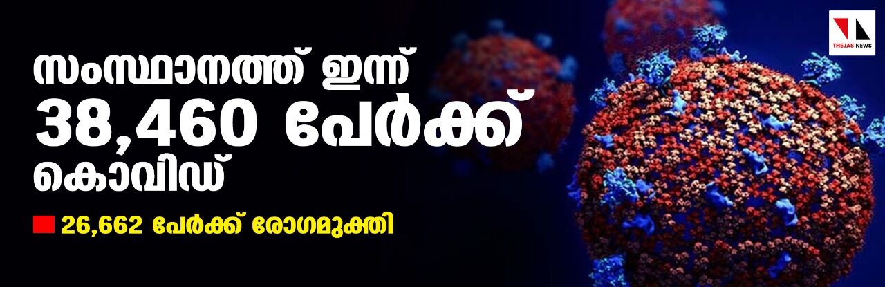 സംസ്ഥാനത്ത് 38,460 പേര്ക്ക് കൊവിഡ്-19 സ്ഥിരീകരിച്ചു; ടെസ്റ്റ് പോസിറ്റിവിറ്റി നിരക്ക് 26.64 ശതമാനം
