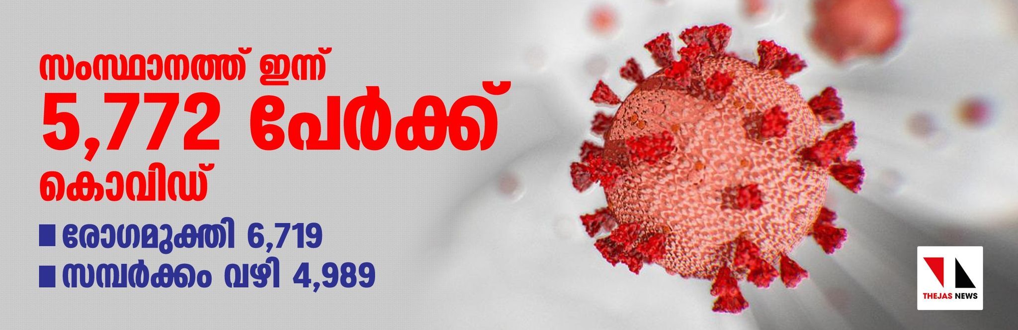 സംസ്ഥാനത്ത് 24 മണിക്കൂറിനുള്ളില് 5,772 പേര്ക്ക് കൊവിഡ്: 25 മരണം