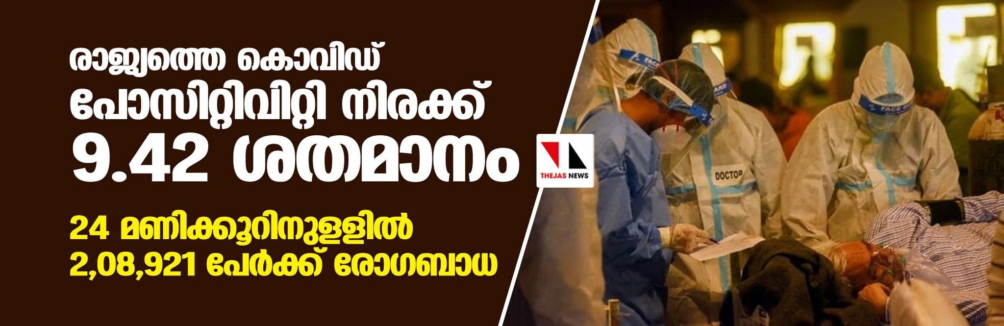 രാജ്യത്തെ കൊവിഡ് പോസിറ്റിവിറ്റി നിരക്ക് 9.42 ശതമാനം; 24 മണിക്കൂറിനുളളില് 2,08,921 പേര്ക്ക് രോഗബാധ