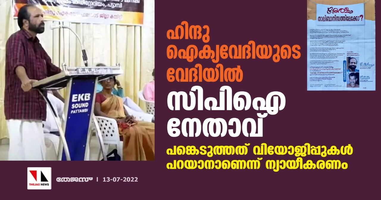 ഹിന്ദു ഐക്യവേദിയുടെ വേദിയില് സിപിഐ നേതാവ്; പങ്കെടുത്തത് വിയോജിപ്പുകള് പറയാനാണെന്ന് ന്യായീകരണം