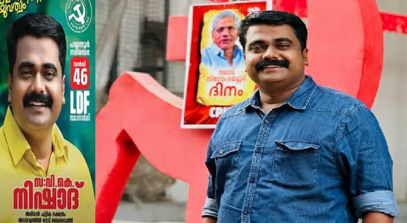 20 വര്ഷം ശിക്ഷിക്കപ്പെട്ട വി കെ നിഷാദ് പയ്യന്നൂര് നഗരസഭയിലെ 46ാം വാര്ഡ് മൊട്ടമ്മലില് നിന്ന് വിജയിച്ചിരുന്നു
