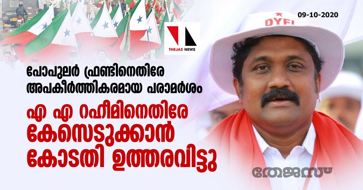 പോപുലര് ഫ്രണ്ടിനെതിരേ അപകീര്ത്തികരമായ പരാമര്ശം: എ എ റഹീമിനെതിരേ കേസെടുക്കാന് കോടതി ഉത്തരവിട്ടു