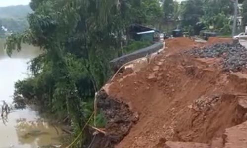 നിര്മാണത്തിലെ അപാകത; പുനലൂര്- മൂവാറ്റുപുഴ റോഡിന്റെ സംരക്ഷണഭിത്തി തകര്ന്നു