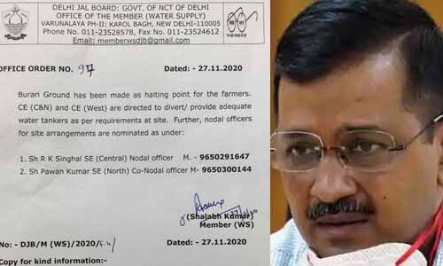 ഇതു സംബന്ധിച്ച് ഡല്ഹി സര്ക്കാര് ഇന്ന് അടിയന്തിര ഉത്തരവും പുറപ്പെടുവിച്ചിട്ടുണ്ട്. ഡല്ഹി ജല ബോര്ഡാണ് കര്ഷകര് തങ്ങുന്ന ബുരാരി മൈതാനത്തേക്ക് വെളളം എത്തിക്കാന് ഉത്തരവിട്ടത്. അതിനു വേണ്ടി നോഡല് ഓഫിസര്മാരെയും നിയമിച്ചു.