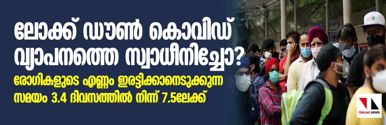 ലോക്ക് ഡൗണ് കൊവിഡ് വ്യാപനത്തെ സ്വാധീനിച്ചോ? രോഗികളുടെ എണ്ണം ഇരട്ടിക്കാനെടുക്കുന്ന സമയം 3.4 ദിവസത്തില് നിന്ന് 7.5 ലേക്ക്