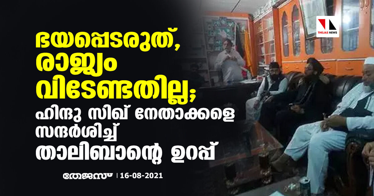 ഭയപ്പെടരുത്, രാജ്യം വിടേണ്ടതില്ല; ഹിന്ദു - സിഖ് നേതാക്കളെ സന്ദര്ശിച്ച് താലിബാന്റെ ഉറപ്പ്