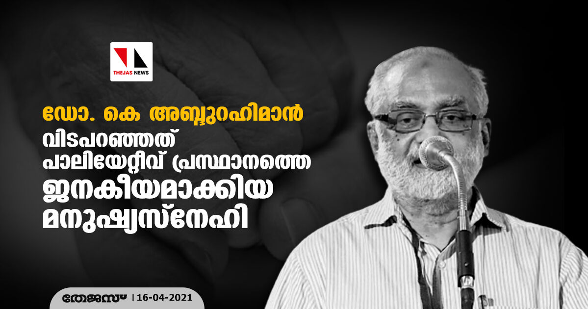 ഡോ. കെ അബ്ദുര് റഹ്മാന്; വിടപറഞ്ഞത് പാലിയേറ്റീവ് പ്രസ്ഥാനത്തെ ജനകീയമാക്കിയ മനുഷ്യസ്നേഹി