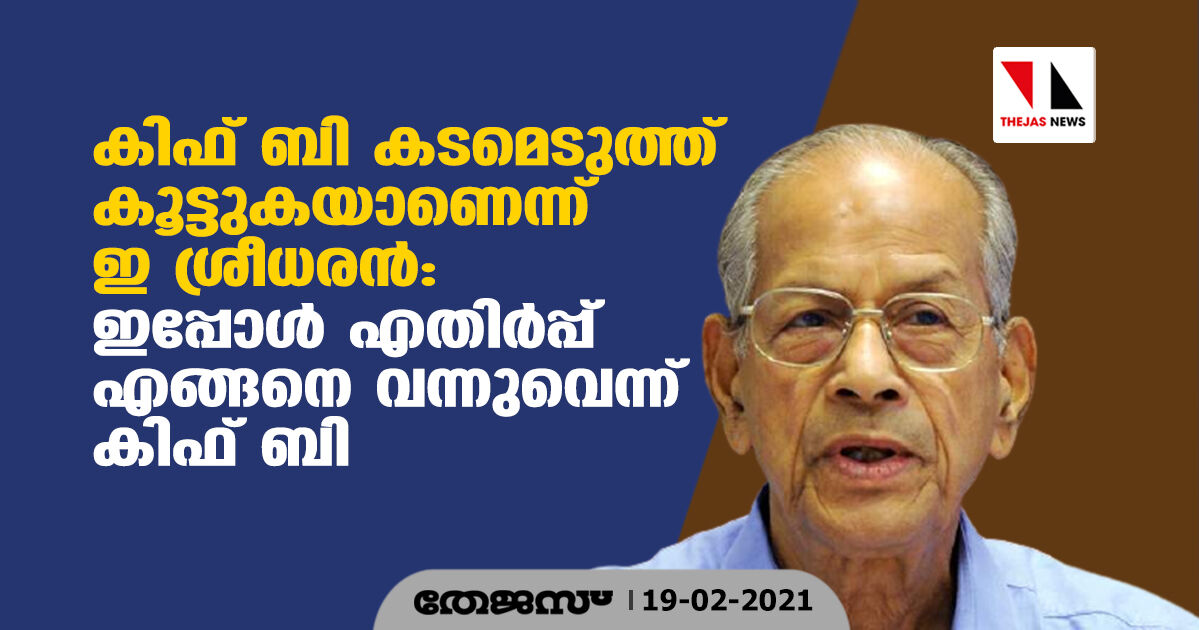 കിഫ് ബി കടമെടുത്ത് കൂട്ടുകയാണെന്ന് ഇ ശ്രീധരന്: ഇപ്പോള് എതിര്പ്പ് എങ്ങിനെ വന്നുവെന്ന് കിഫ് ബി