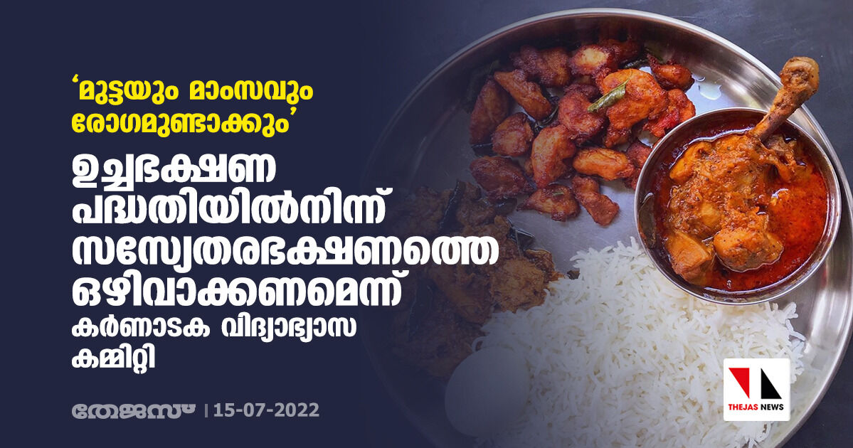 'മുട്ടയും മാംസവും രോഗമുണ്ടാക്കും': ഉച്ചഭക്ഷണ പദ്ധതിയില്നിന്ന് സസ്യേതരഭക്ഷണത്തെ ഒഴിവാക്കണമെന്ന് കര്ണാടക വിദ്യാഭ്യാസ കമ്മിറ്റി