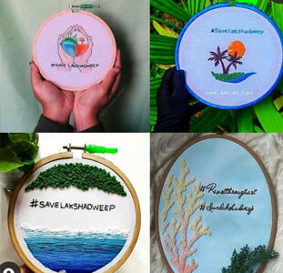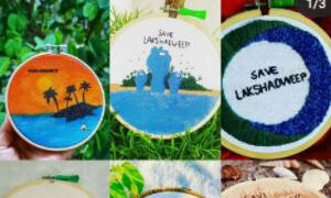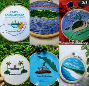ലക്ഷദ്വീപിന്റെ മനോഹാരിത തുണിയില് തുന്നി 'സേവ് ലക്ഷദ്വീപ്' കാമ്പയിനുമായി എംബ്രോയിഡറി കലാകാരികള്